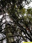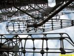 Замысловато выглядят лифты, с помощью которых, обслуживающий персонал поднимался на высокие отметки. Сейчас лифты стоят на земле с раскрытыми дверками, как бы приглашая... На верхней лифтовой площадке, в трубе опоры, устроена дверь и дальнейший подъем, на самый верх радара, можно было осуществить, карабкаясь по лестнице встроенной внутри опоры мачты. Любопытно, как там - на самом верху? Запрокинув голову вверх, смотришь на уходящие в небо мачты и где-то там, в вышине над ними медленно проплывают облака. Кажется, что время остановилось возле металлических конструкций и эти сооружения, споря со временем, могут простоять еще не один десяток лет.