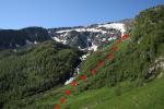 Был выбран район западнее п. Архыз, так как поход пешеходный и в нём важна автономность, а также наличие различных протяженных препятствий, в том числе зарослей и всевозможных дебрей. Их мы рассчитывали найти (и на свою голову потом таки нашли) в малохоженой части этого района в долинах рек Бол. Лаба и Санчаро.