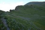 Верхнюю границу леса замыкает низкорослая береза, которая сменяется зарослями рододендрона и богатыми субальпийскими лугами. Еще выше расположен пояс альпийских лугов, доходящий до границ вечных снегов и ледников, С весны до глубокой осени сменяя друг друга, поражая обилием красок и форм, на горных лугах цветут многолетники.