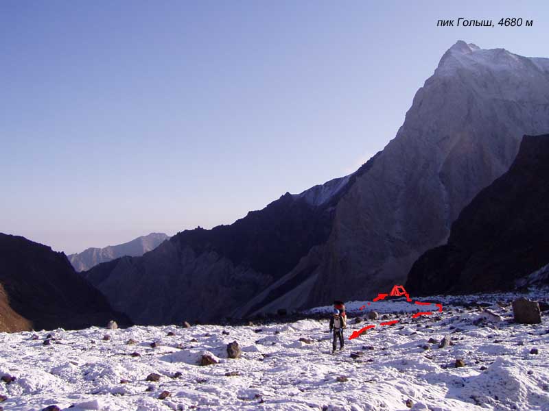 Подъем по леднику Кокбелес от песчаных ночевок под пиком Голыш