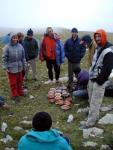 Весь день прошел в подъемах по бесконечным и крутым травяным склонам со змеями в поисках перевала Джилкиауш (1А, ок.3000), в цирке под которым нас опять ждал "фирменный" борщ (фото).