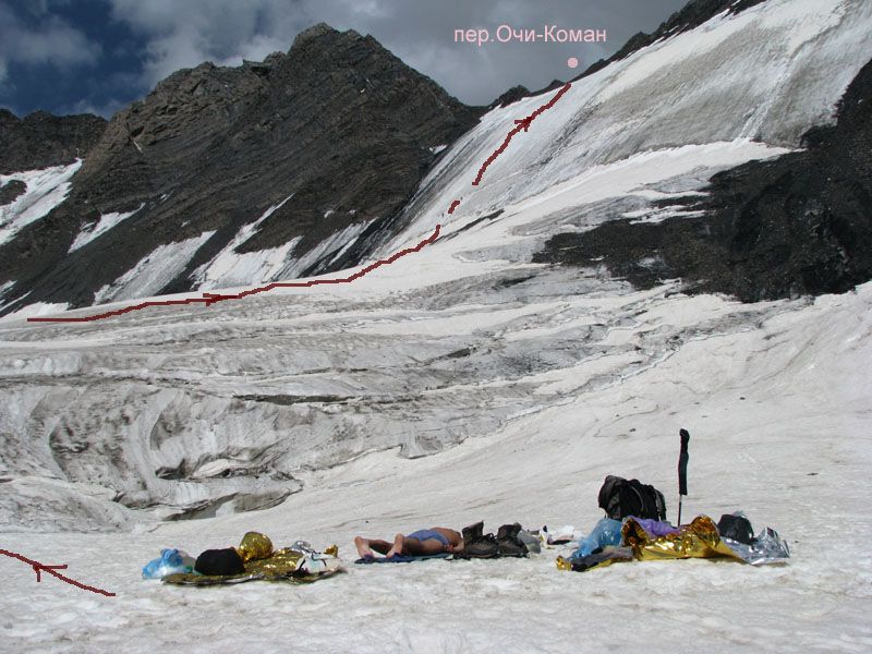 Две точки на склоне - ребята, завешивающие перила на следующий день.
