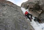 Маршрут оказался в хорошем состоянии (примерно WI4+), и проявлять смелость не пришлось. На первой веревке было много льда, и местами можно было крутить надежные буры.