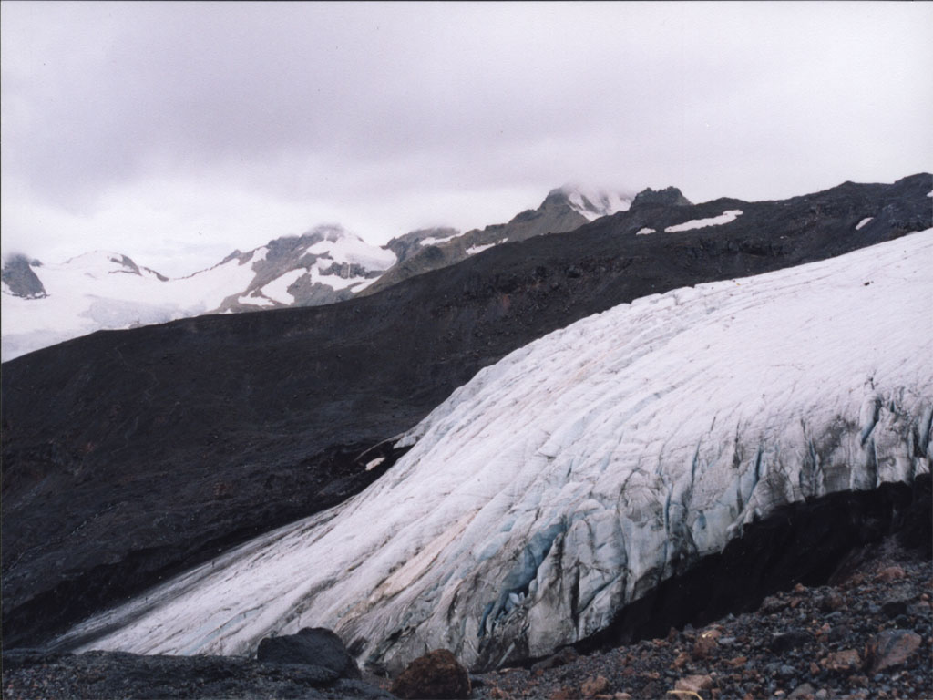Следующие полдня я просидел на рюкзаке в ожидании трех зеленых свистков от Батла на Эльбрус (они тоже туда ломились). Не дождался и устроил радиалку к подножию ледника Малый Азау, 3500м.