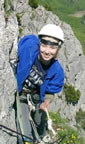 Наступний ранок (7.05) зустрів нас просто ідеальною погодою. О восьмій ми знову під трійкою. Знову перша мотузка моя, друга Вовина. Лізучи її другим, вже традиційно дивуюсь, який монстр у мене в напарниках. Лазіння і справді непросте - десь V категорії. Ситуацію рятує шлямбурна доріжка. Без неї боротьба за проходження цієї мотузки була б значно тривалішою. А ось і Вова - махає ногами на станції під карнизом. Пригадується фраза із опису: - Обойти карниз удобно слева или справа, вертикальная щель по его центру - более сложный вариант - :