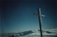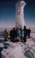 Первым поднялся Лёха, потом Машка, третий - я, а дальше уже не помню, но в течение 3 минут весь отряд был на горе. Снега на верхушке было очень мало, он не успевал там оседать - сносило ветром. Температура около -15 о С (если бы не ветер, то можно было подольше там побыть). Видимость отличная - было видно даже обсерваторию. Встретили две группы по 3 человека, перекинулись парой фраз. Фотографировались мин.5, и начали собираться, ибо все конечности начали сначала мёрзнуть, а потом онемевать. Спуск планировался к т/л ?Заросляк?.