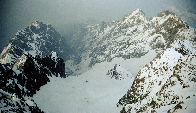 Этот "паршивенький" снег, под которым был то лед, то вода, то гладкие плиты, то самого снега почти не было, или он ехал под ногами - сопровождал нас до самого конца восхождения. Нервно посмеиваясь, часто вспоминали "последние фразы альпинистов, которых никто уже не услышал" - про страховку, которая готова, но лучше не нагружать, ну и про паршивенький снег. ..