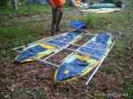 Минулого року на закритті водного сезону на Південному Бузі я познайомився з одеситами з турклубу ?Водний бобслей?. Вони мені сподобались в усіх відношеннях і після закриття сезону у мене залишилось бажання відкрити новий сезон також разом з ними. Якщо не рахувати купання в Дніпрі 11 січня та в Чорному морі на Великдень, то з відкриттям водного сезону цього року у мене не складалося досить довго. Але в решті решт все склалося і попри те, що я почав займатися цим питанням трохи запізно, мені вдалося приєднатися до одеситів для сплаву Чорним Черемошем та водяного походу Прутом на травневі вихідні. Компанія у одеситів чимала, тому без врахування вільних художників у них сформувалося 4 автономних групи (3 на катах + каякери), які вирушили за схожими маршрутами. Всі групи окрім каякерів їхали разом на іскричці з Франківська до Ворохти та потім доїжджали на бусах до місця старту в Буркут. Нарешті мені вдалося проїхатися карпатськими тунелями на іскричці, а то завжди маршрутки та маршрутки. Втрати часу звичайно більше, але їхати іскричкою значно приємніше. До того ж краєвиди за вікном були чарівними як ніколи: зелена-зелена соковита трава, поляни кульбаби, блакитне небо з невеличкими хмарками? На все це можна дивитись вічно навіть без води :) Я потрапив до складу майже сімейної групи, яка йшла на 3-х двойках. Це безперечно був позитивний момент, адже пливти на 2-ці явно цікавіше ніж на 4-ці. Щоправда капітан на моєму каті важив на 40 кг більше за мене, тому врівноважувати наш кат від майже гарантованого кілю довелося двома рюкзаками на моєму балоні :) На відміну від пішого походу у водному перед тим як кудись попливти треба ще зібрати те на чому попливеш :) Процедура не надто швидка і можна сказати, що перший день витрачається майже на неї. Поки каякери сплавлялись всі інші збирали свої суда. Маю сказати, що якщо не знаєш що саме ти збираєш, то справа це досить геморна. Тим більше якщо катамаран не новий. В процесі експлуатації деякі речі зношуються, деякі губляться, замінюються на нові і з часом виходить так, що кожна деталь має в кінцевій конструкції своє унікальне місце і зібрати кат по іншому вже просто не можливо. Навіть на перший погляд симетричні речі отримують своє чітке місце і не можуть бути переставлені на інший бік або вперед/назад. Як сказав би Хінді: ?Мана-мана?, а якщо перекласти це на рідну мову, то зібрати кат до вечора ми не встигли :) Щоправда теж саме стосується й інших екіпажів нашої групи. Наступного дня ми прокидалися о 6-ий, щоб дозбирати катамарани, але вийшли на воду лише в обід. Після Інтегралу на Мигії це було моє друге перебування на бурхливій воді. Певні навички я там звісно отримав, але то було давно і зовсім інакше. Верхів?я Чорного Черемошу досить спокійне, тому була можливість дати пригадати м?язам як саме гребти, почати орієнтуватися на воді самому, щоб наперед бачити потрібні маневри та пригребтися один до одного. Але Чорний Черемош цікава річка і там можуть бути зовсім непередбачувані перешкоди. Скажімо такі як низенький дерев?яний місток. Тих декількох секунд, протягом яких роздивляєшся де краще під ним пройти і чи можливо взагалі як раз вистачає, щоб опинитись вже прямо перед ним. Він був настільки низьким, що я для певності виліз з упорів та повністю ліг на кат :) Не знаю як він там стоїть, весняними повенями його має змива