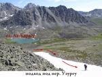 • Вследствие нехватки времени отказываться от второй части похода (посещение Северо-Чуйского хребта) и после прохождения перевала Переметный идти пер. Карагем - пер. Кызылташ (2А) - пер. Купол (1А) - а.л. Актру.