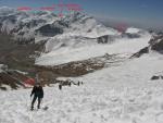 Вопрос безопасности ?1 - высота и соответствующая акклиматизация. А так же камнеопасные склоны при подходах началу подъема. На самом подъеме - закрытый ледник, движение в связках. Местами склон значительной крутизны и в разные годы может понадобиться попеременная страховка.