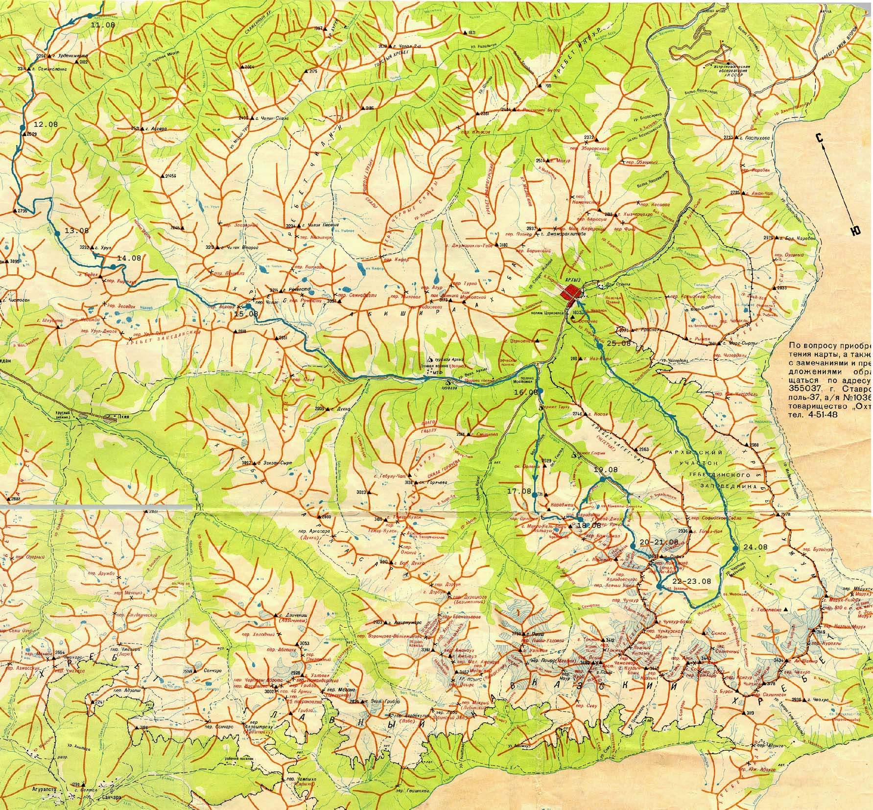 Звіт про гірський похід третьої категорії в районі Західного Кавказу, (підрайон Архизу) 10-26 серпня 2005 року (pdf, 3.3 Мб).