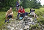 Из-за непрекращающегося дождя шли 5 часов без привала. До г. Братковская (фото 51) шли тропинке маркированной бело-зелено-белым маркером. Между г. Братковской и г. Гропой (фото 52) шли по тропинке, которая местами становилась каменистой. Ориентировались по приграничным столбам и GPS. После г. Гропа до поворота на г. Дурня двигались по маркированной тропе (бело-черно-белый маркер). Примерно за 500 метров до г. Дурня (фото 53) и 500 метров после шли по тропинке, проходящей через жереп, высотой в 3,5 метра. Остановились на ночевку между 52 и 53 приграничными столбами, рядом с ручьем. Вид с места ночевки по ходу движения на фотогорафии 54.