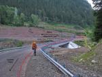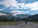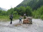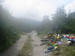 На этой машине мы завезли заброску на базу МЧС, встали там на учёт в КСС и потом вернулись на место старта к пос.Нижний Архыз. Пропуска в погранзону и в заповедник (ТГПБЗ) были у встречающего нас водителя (мы их предварительно заказали также в “Барсе”). Получилось довольно быстро и удобно - приехав в Невинномысск в 2 часа ночи, в 5 утра мы уже вышли на маршрут. Правда, на четверых немного дороговато - стоимость трансфера Невинномысск-Архыз - 5000 руб./рейс/машина. На Р265 до самой базы МЧС и немного дальше (в сторону Дукки) проложен хороший новый асфальт, это связано с интенсивным развитием в последние годы Архыза как горнолыжного курорта.