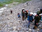 7. Требования к организации движения и страховки: движение плотной группой, не растягиваясь, самостраховка альпенштоками или ледорубом. Обязательны каски. Необходимы знания и навыки передвижения по осыпному склону. В случае снежно ледового покрытия движение необходимо осуществлять предварительно связавшись, в кошках с самостраховкой ледорубом.