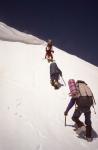 Характер рельефа при подходе к биваку на высоте 6800 м. | Крутой, но короткий последний взлет при выходе на перевал Калаксонг 7260 м |