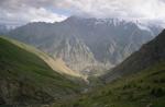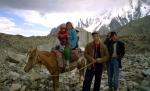 Для местных жителей пересечь на лошади зачехленный многокилометровый ледник - привычное занятие. | Спустившись со второго перевала маршрута мы подошли к средней части долины р. Чимген. |
