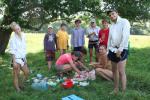 | 15.07 19.07 23.07 | Рис молочный, бутерброды с сыром, вафли, чай, карамель. | Борщ красный, бутерброды с салом, чеснок, майонез, бублики, чай. | Макароны мясн., салат (капуста, огурцы, лук, майонез), бутерброды с паштетом, сухари, чай. |