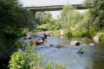 На заказном микроавтобусе приехали на начало сплава - ж/б автомобильный мост за с. Шкаровка (Фото 4). Разбили лагерь на правом берегу реки перед мостом (Фото 1).