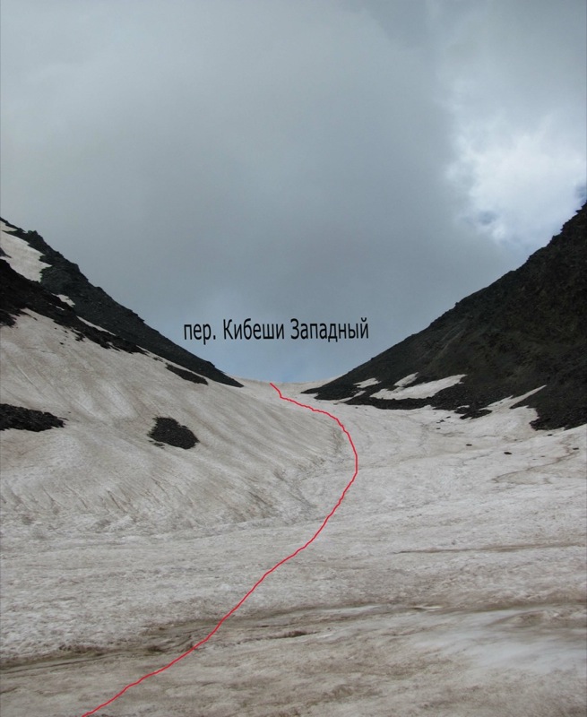 Спуск с пер. Кибиши(1Б, 3450) в долину реки Кистинка.