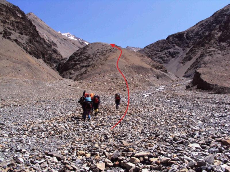 Фото 8-01 ? Начало движения к перевалу Конгур от р.Джили-Суу по ярко выраженному гребню