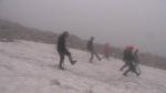 Перед обідом деякі учасники купаються в озері (фото 11), а після обіду на сніжнику під вершиною проводимо сніжно-льодові заняття (фото 12-16). У другу половину дня знаходимося в тумані, а вночі знову йде злива.