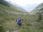 Через 2 км від ночівлі рідколісся кінчається і починається зона альпійських луків. Продовжуємо рухатися правим берегом річки.