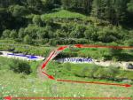 ущелини Учкуланічі. Дорога переходить на лівий (орографічно) берег, але ми продовжуємо йти правим берегом по стежці, яка поступово починає підніматися по ущелині входячи в сосновий ліс. Вдовж стежки багато кущів малини, агрусу та барбарису. Зупиняємось на обід, збираємо ягоди (фото 4). На самому початку ущелини є зручні місця для ночівель. У наступні 1-1,5 години руху вгору по ущелині місць, зручних для ночівель, немає.