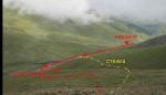 | 2 | пер.Балк-Баши - р.Кизилкол | 6 | 1:50 | стежка, середній осип | туман, +10°С | ночівля на лівому березі біля місця броду | ||