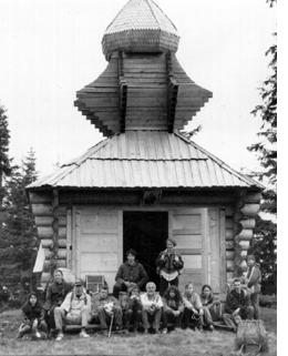 от румынской границы, обозначенное двумя столбиками: невысоким каменным австрийским 1887 года, с полустершимися латинскими надписями, которые мы так и не смогли разобрать, и высоко взметнувшимся советским, из нержавеющей стали. Вволю нафотографировавшись в различных позах (под столбом, над столбом, в обнимку со столбом) и выпив Кружку Дружбы (флягу с содержимым которой Лёша мужественно нес весь поход в дальнем кармане рюкзака), мы нашли подходящий склон и сотворили себе обед. Желающие могли даже отведать суп с белыми грибами, которые были куплены здесь же у местных ребят. Дорога на станцию показалась нам еще короче; под конец нас попытался застигнуть