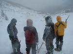 Целый день пасмурно, холодно и сыро. Туман(низкая облачность), очень сильный сырой леденящий порывистый западный ветер. Особенно на перемычке и немного меньше – на перегибе. Внизу в конце крутой части уменьшился из-за сброса высоты и закрытости цирка.