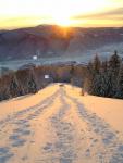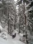 Спуск по дуже крутому (місцями більше 45 градусів) схилу із мокрим снігом (південна сторона і мала висота), що лежить на старому листі. Це створює певні проблеми у вигляди рекордного налипання до снігоступів, скочування і сповзання із прискоренням цілих шарів снігу, а також потреби рухатися кожен своїм шляхом (кожен крок сильно сміщує сніг донизу, тому наступній людині доводиться або ступати в листя або вибирати власний шлях). Лавинна небезпека втім невелика через густий і товстий ліс, хоча в окремих місцях збити з сніг пластом може.