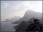 І раптом опиняємося на перевалі Калістон. Якось так непомітно - зробили привал подуплитися в карту, Руслан поскакав скелями з фотоапаратом, за ним побрели Костя і Костя. А потім вже і ми з Натою підійшли і сіли поруч на ще несхололе каміння - хоча сонце уже занурилося у сірі пласкі хмари. Звідси можна дивитися на Крим від Сокола до Аю-Дага. І ми дивилися, дивилися, дивилися. Ніби це і було те місце, куди ми приїхали зі свого Києва. Раптом у небі з?явився орел - виріс із темної точки десь над Муедзин-Кая. І не зник, а полетів до нашого Калістона, і наблизився так, що стало видно розчепірене пір?я на його нерухомих крилах.