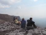 На обіді (між двома каменюками на схилі - примарний затишок) трохи не спалили шлангу газової пальнички, я вже готова була гасити полум?я супом. Довелося клеїти попалене скотчем і пластирем. Було холодно. Коли йшли яйлою, вітрюган норовив збити з ніг, тому іноді бралися за руки.