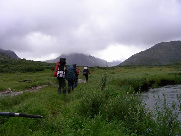 Группа идет по тракторной дороге вдоль р. Балбанью