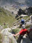 - Ділянка від озера Сълзица до вершини Каменишки і далі в Окаденски циркус і п. Суходолски – через набагато зручніший шлях до Віхрену через хижу Яворів, туристи забули про це поховане в трьохметровому жерепі зникаюче озеро і траверс, що починається з перевалу над озером. Траверс закінчується подоланням здоровенних скелястих жандармів і виходом на вершину Бутин. З середини жандармів ми знайшли осипну сідловину, якою спустилися у дикий Окаденски циркус і далі курумниковим схилом вийшли на Суходолски превал (сукупно 1А).