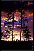 | Небо горит - Сосны, пламя, но горит не дерево, горит небо. А все что под небом, тревожно следит за красотой небесных метаморфозов. |