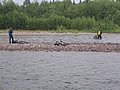 Сегодня у нас получилась полудневка. Жаркое солнце и безветрие, уже ласковая река Лимбекою, на высоком берегу которой мы стоим, сделали свое дело. Все хорошо расслабились, мошка и комары отстали, и мы с удовольствием загораем. Недалеко от лагеря гуляет парочка глухарей.