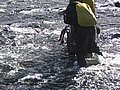 Андрею тоже нелегко. Благодаря большему весу, ему проще противостоять течению, но сложнее вытерпеть долгое переохлаждение в холодной воде, т.к. только у него не было неопреновой обуви. Первый раз с рюкзаками брод Лимбекою занял около 30-40 минут, зато все успешно переправились на противоположный берег.