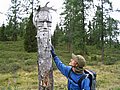 За 400 метров до вершины выходим на деревянный крест, хорошо видимый снизу, поставленный христианским обществом в 1998 году. Погода совсем ухудшается, видимость до 5 метров. Но все равно мы подымаемся на вершину Урала.